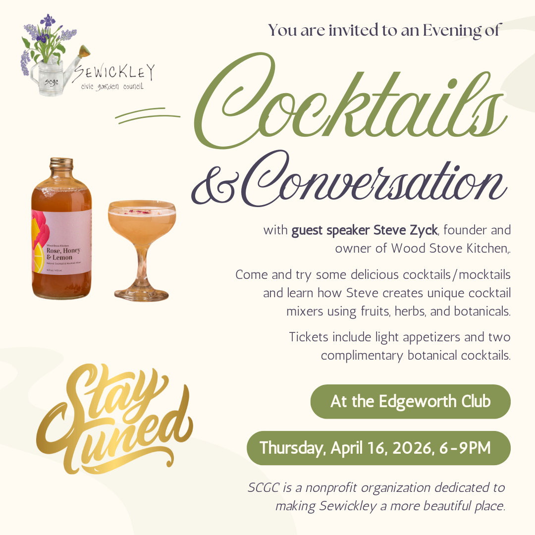 Save the date for our upcoming event on Thursday, April 16, 2026 from 6-9pm at the Edgeworth Club. Attendees will enjoy tasty appetizers, sip custom cocktails, and learn about using botanicals in the creation of cocktails and mocktails.